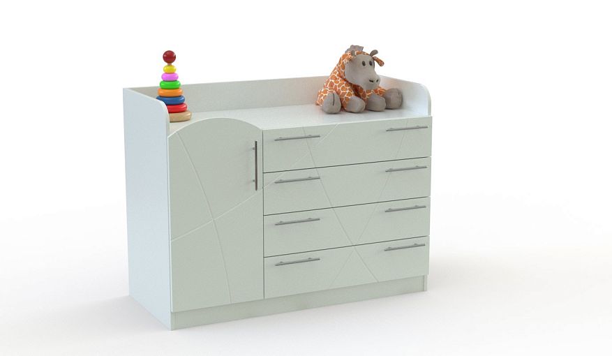 Детский комод Мая 1 BMS сочетает в себе функции пеленального и бельевого. Универсальная модель с просторной верхней панелью, ограниченной скругленными бортиками, оборудована четырьмя выдвижными ящиками и распашным отделением с полками для удобного хранения детских вещей. Особенность дизайна комода – фигурный цветной фасад, украшенный оригинальной фрезеровкой и оснащенный ручками-рейлингами. Купить детский комод Мая 1 BMS приглашаем в наш интернет-магазин с выбором фурнитуры и цвета по каталогу.