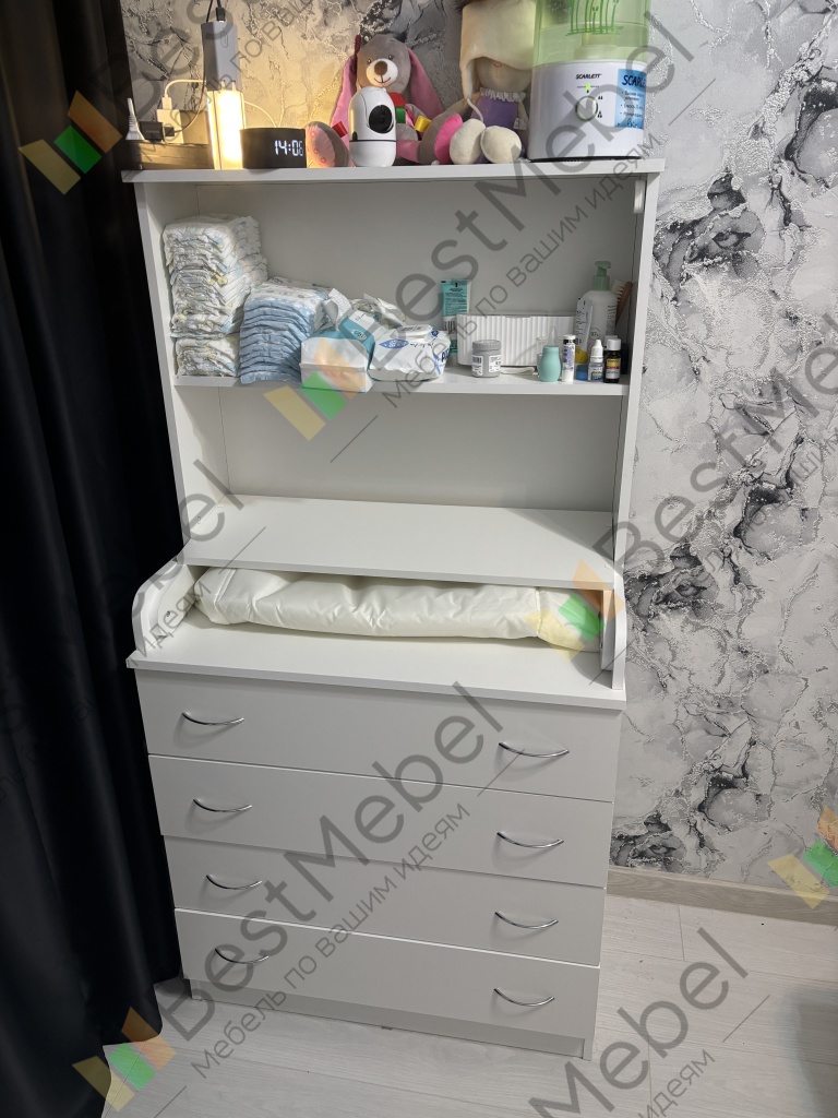 Супер удобный пеленальный комод, качество хорошее, заказала по индивидуальным размерам, пришел очень быстро, полки очень удобны, не знаю без них куда бы распределились нужные с малышом вещи, которые должны быть под рукой.Полки хорошо открываются, туда складываем одежду.