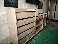 Комод отличный. Всего оба изделия - 2 метра. Конкретно мы заказали высокий комод шириной 80 см, а пониже - 1,20 м. Также дополнительно заказали секции для 2-х ящиков, и все ящики и петли с доводчиками. Комоды шикарные. Сборку брали у партнёров магазина - выше всяких похвал. Надеемся, прослужит долго.