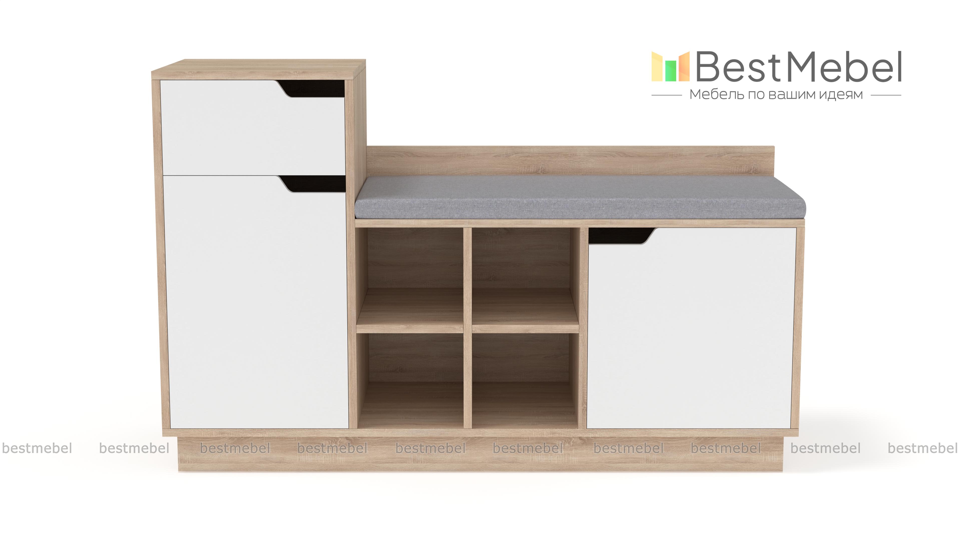 Обувница Лидер 1 BMS отличается необходимой современному интерьеру функциональностью. Комбинированная модель оборудована открытыми полками для повседневной обуви, секцией с глухой дверцей, тумбой с выдвижным ящиком и распашным отделением для хранения аксессуаров и средств по уходу. Комфортным обувание сделает широкое сиденье с мягкой обивкой в ткани. Теплые древесные тона универсальны и сделают интерьер прихожей уютнее. Купить обувницу Лидер 1 BMS по выгодной цене приглашаем к нам в интернет-магазин.