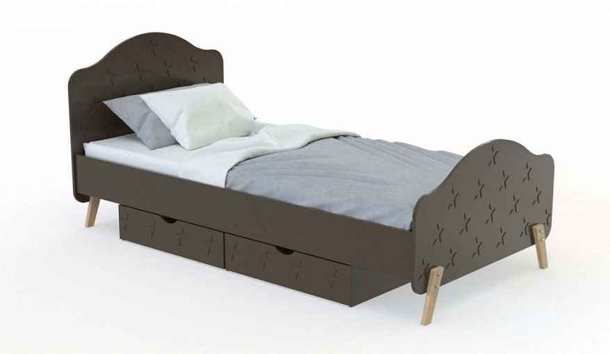 Кровать Папайя 18 BMS поможет оборудовать уютную зону отдыха в современной детской. Модель с фигурно вырезанными спинками, украшенными фрезерованными звездочками, располагается на устойчивых скошенных ножках в скандинавском стиле. В двух выкатных ящиках под кроватью удобно хранить постельные принадлежности, игрушки и прочие вещи, сэкономив пространство комнаты. Купить кровать Папайя 18 BMS с возможностью выбора цвета и размеров вы всегда сможете в нашем интернет-магазине.