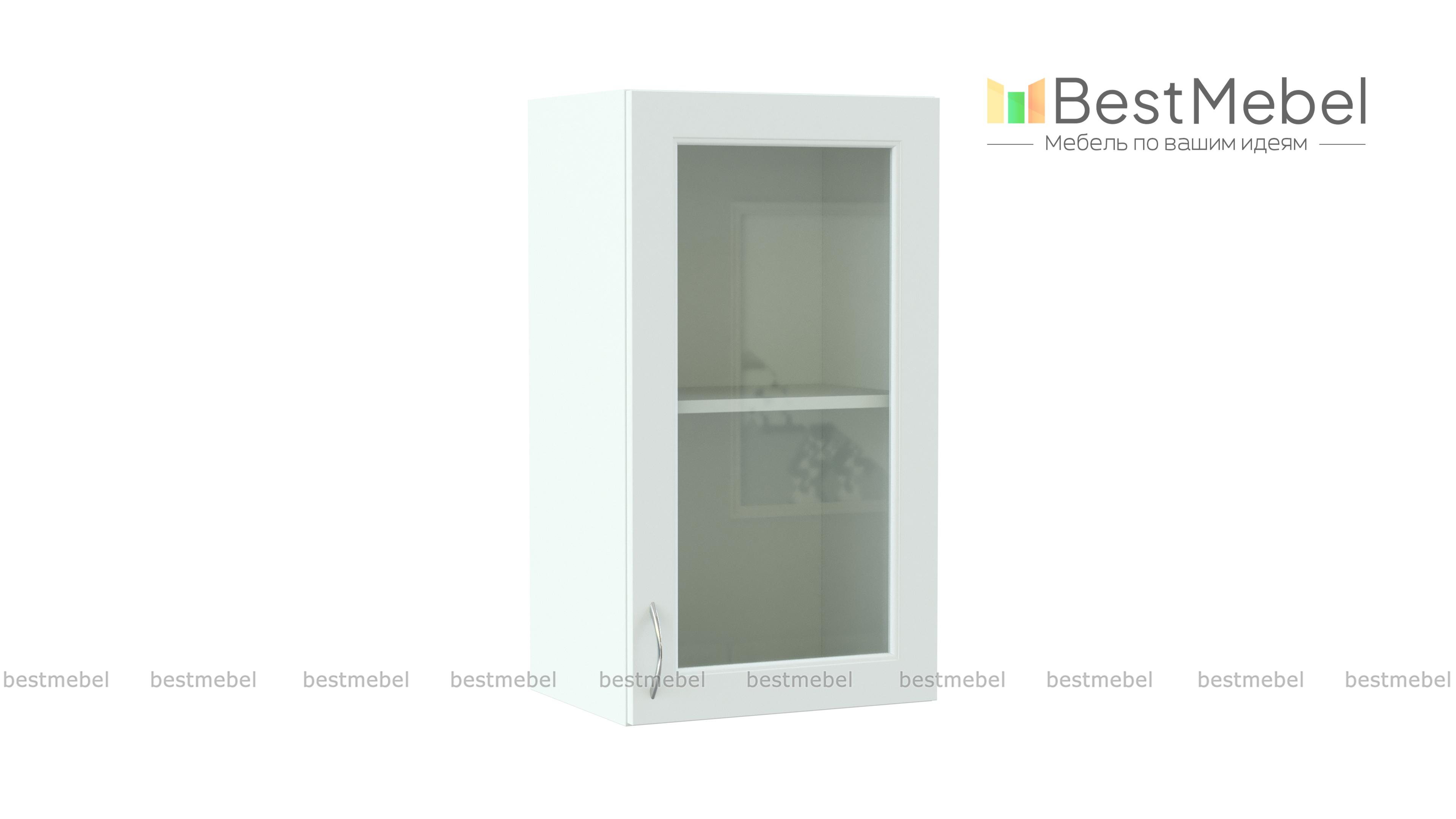 Шкаф-витрина Николь 1 дверь BMS может стать частью мебельного гарнитура или использоваться отдельно. Светлый фасад со стеклянной вставкой, украшенной фрезеровкой, и изящной ручкой под серебро будет гармонично сочетаться с кухонным интерьером в стиле кантри. За распашной дверцей располагается полка, удобная для хранения посуды и продуктов – чая, кофе, специй. Купить шкаф-витрину Николь 1 дверь BMS, компактную и эффектную, приглашаем в наш интернет-магазин.
