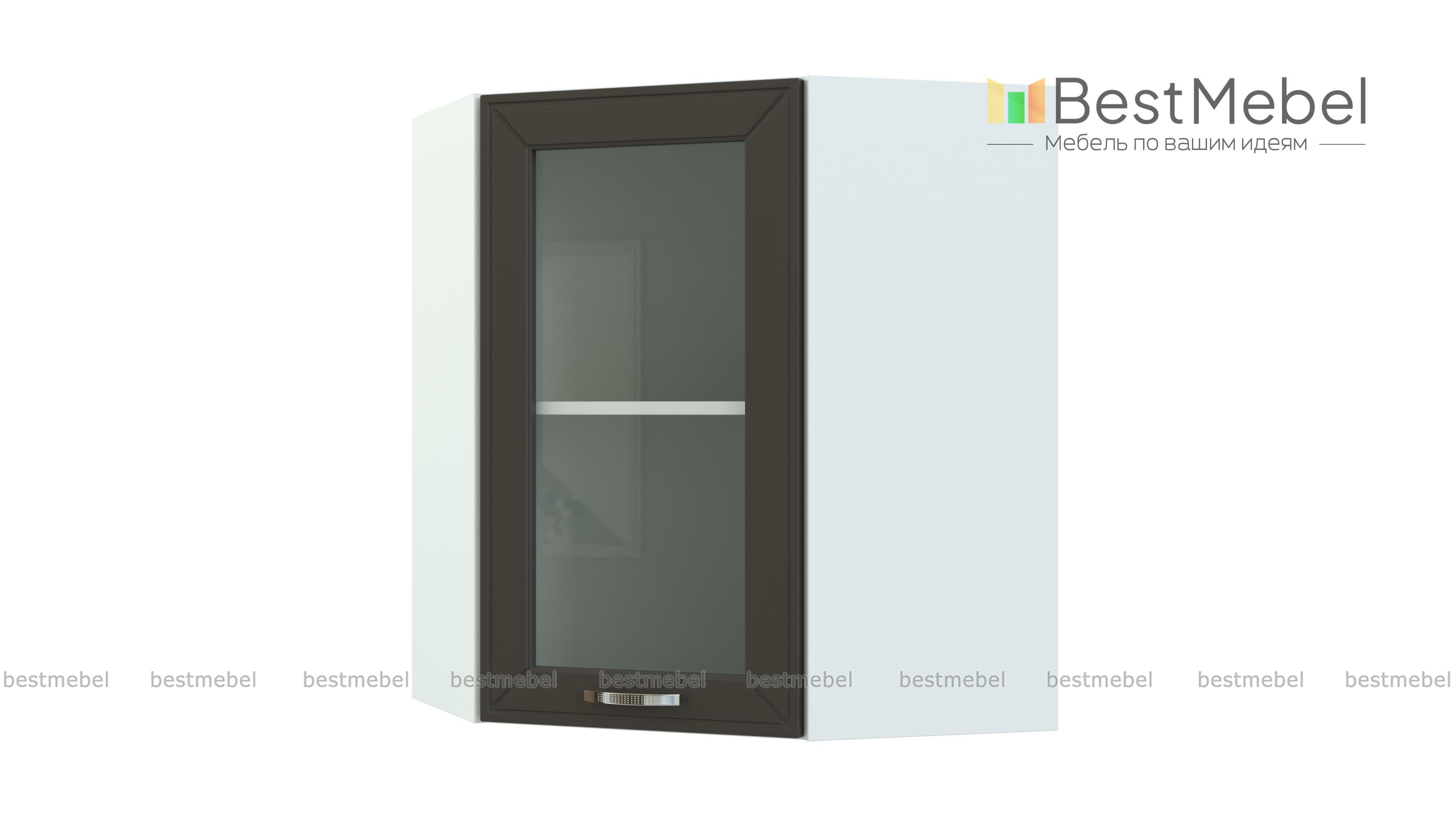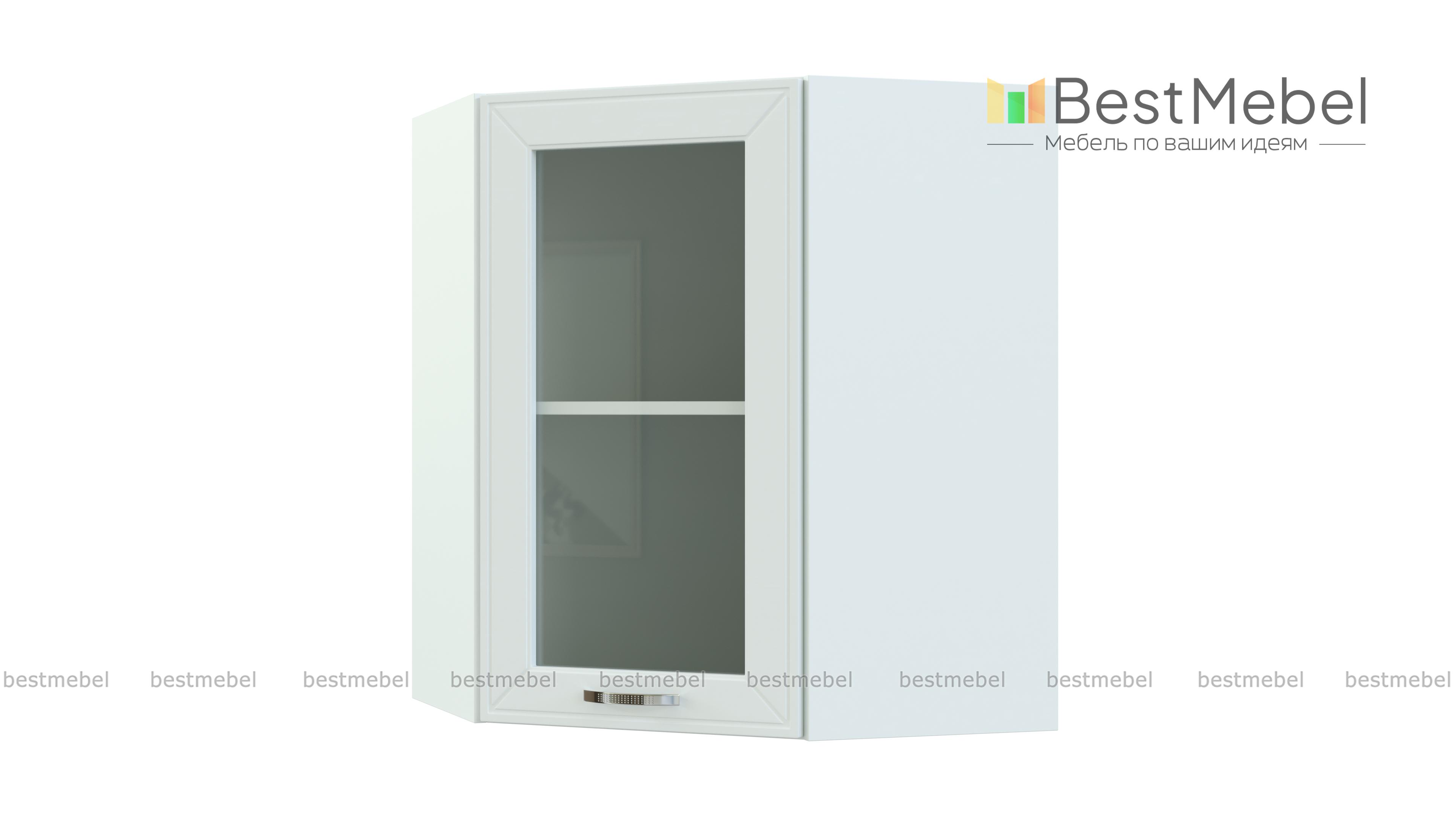 Шкаф-витрина угловой Маргарита BMS – практичная комбинированная модель, которая выполняет не только декоративную функцию, но и служит для стыковки прямых элементов в кухонном гарнитуре. Шкаф выполнен в форме трапеции и отличается особенной вместительностью. За распашной застекленной дверцей располагается просторное внутреннее отделение с полкой для посуды и хрупких предметов. Фрезерованный фасад органично впишется в уютный интерьер стиля прованс. Купить шкаф-витрину угловой Маргарита BMS приглашаем в наш интернет-магазин по доступной цене.