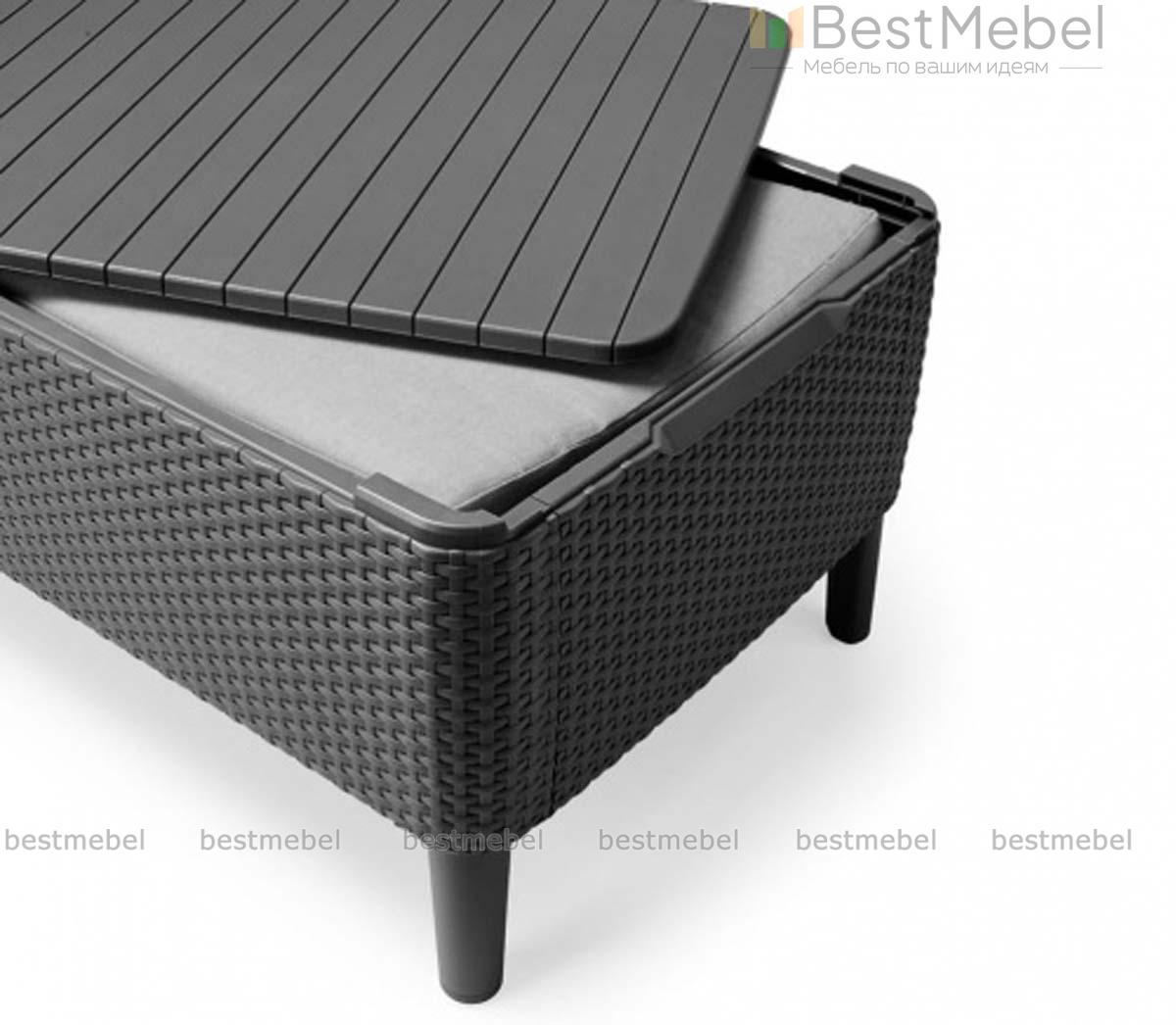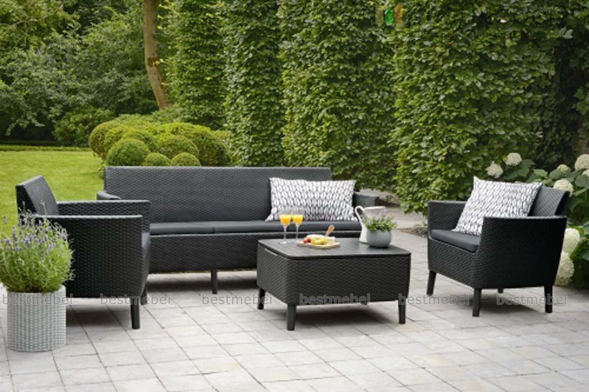 Комплект Salemo 3 seater set выполнен из прочного пластика и отличается эргономичным современным дизайном. Поверхности предметов, устойчивые к неблагоприятным погодным условиям, просты в уходе, не выгорают и не деформируются со временем. Комплект включает в себя все необходимое для комфортного отдыха в саду: два кресла 79х66.5х76 см, столик с отделением для хранения небольших вещей 76х56.5х41.5 см и трехместный диван 187х66.5х76 см. Купить комплект Salemo 3 seater set для оформления удобной и стильной зоны отдыха вы сможете в нашем интернет-магазине.