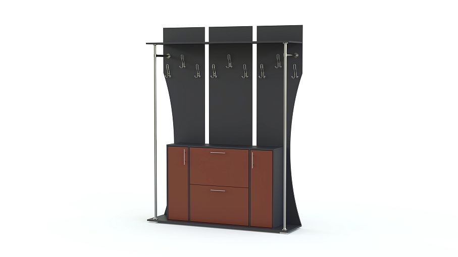 Прихожая МБ 25.1 BMS станет не только практичным дополнением домашнего интерьера, но и ярким акцентом. Оригинальная композиция включает в себя открытую вешалку с фигурно вырезанной панелью, две мини-штанги на высоких хромированных опорах, антресольную полку и вместительную тумбу-обувницу с распашными отделениями и откидными галошницами. Сочетание насыщенных графитовых тонов и цветного фасада не оставит вашу прихожую незамеченной. Купить прихожую МБ 25.1 BMS приглашаем по отличной цене в наш интернет-магазин.