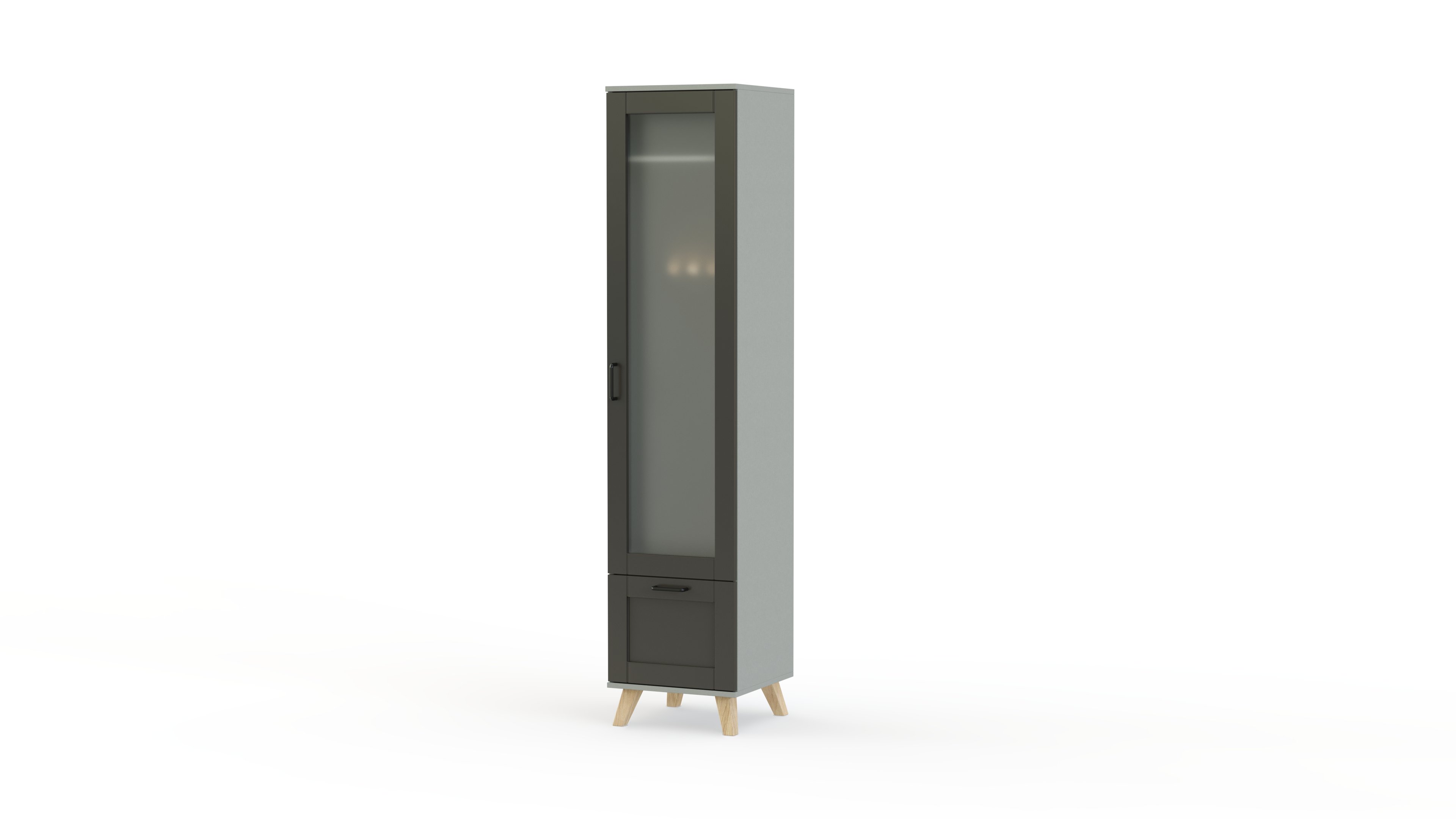 Шкаф-пенал Веста 20 BMS можно комбинировать с другими модулями коллекции или использовать самостоятельно в современном интерьере. Застекленное распашное отделение дополнено выдвижным ящиком с глухими фасадом, оформленным широким рамочным профилем. Темный оттенок фасада составляет стильный контраст со скошенными опорами в цвете венге. В шкафу 3 дополнительные полки. выдвижная штанга и деление в ящик выдвижной.