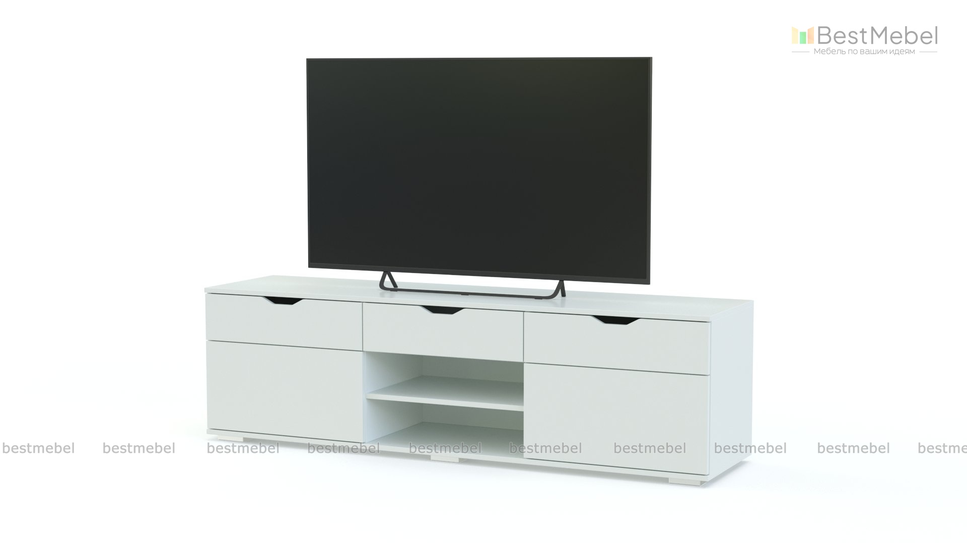 ТВ тумба VG617 BMS отличается лаконичным дизайном и универсальной для современных интерьеров белоснежной расцветкой. Вместительная модель с широкой столешницей подходит для размещения ТВ, а для дополнительной аппаратуры и разнообразных домашних мелочей предназначены три выдвижных ящика, два распашных отделения и открытая полка. Комфортным и безопасным пользование сделают практичные ручки-вырезы. Купить ТВ тумбу VG617 BMS по лучшей цене вы всегда сможете в нашем интернет-магазине.
