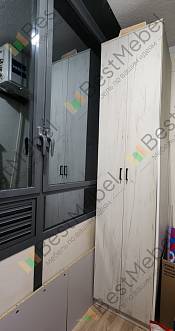 Заказ 00000858508Шкаф муж собрал сам, достаточно быстро ))Мы заказали в белом цвете, увеличили ширину и немного убрали глубину. Ещё добавили одну полочку, чтоб больше всего уместилось )Влезло пол детской в этот шкаф, я очень довольна )