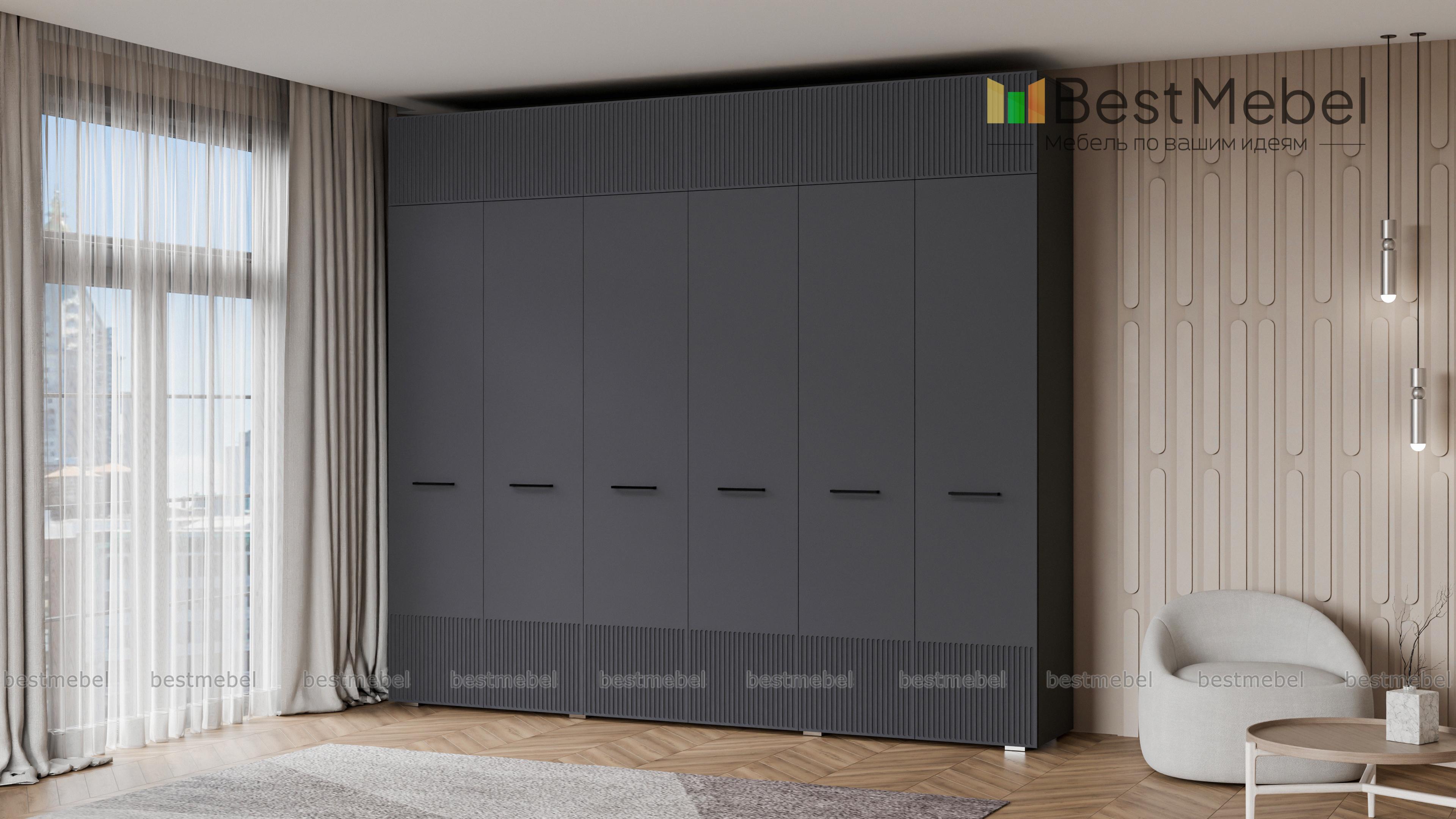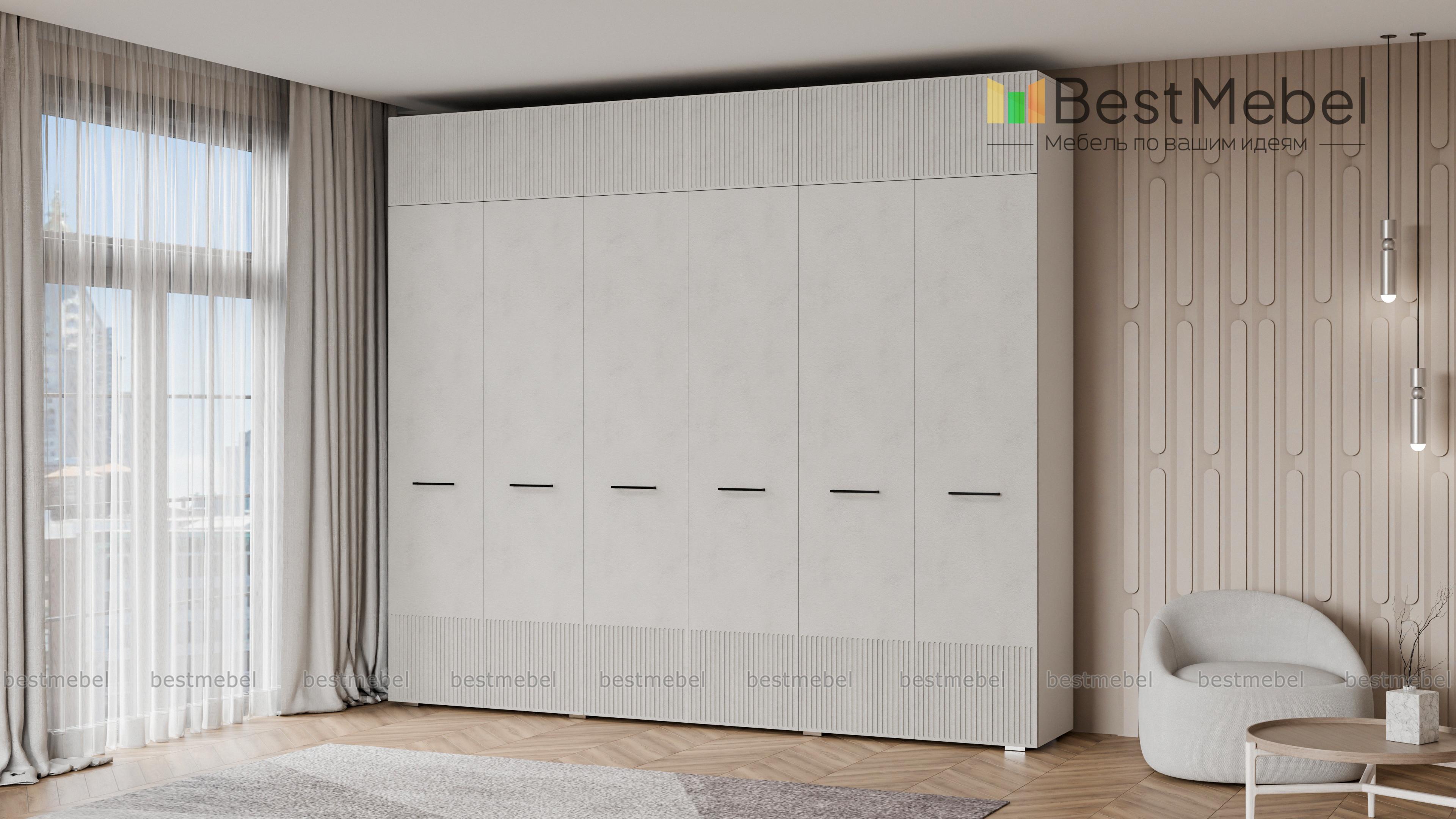 Шкаф распашной Декарт 12 BMS — это вместительный современный гардероб с антресолью. В двух секциях с перекладинами и двух бельевых отделениях можно хранить одежду на вешалках и сложенные вещи, а то, что вы редко используете, убрать на верхние полки. Светлый, рифленый по низу и верху фасад шкафа оснащен стильными поперечными ручками. Купить шкаф распашной Декарт 12 BMS вы сможете на сайте нашего интернет-магазина с изготовлением по индивидуальным размерам.