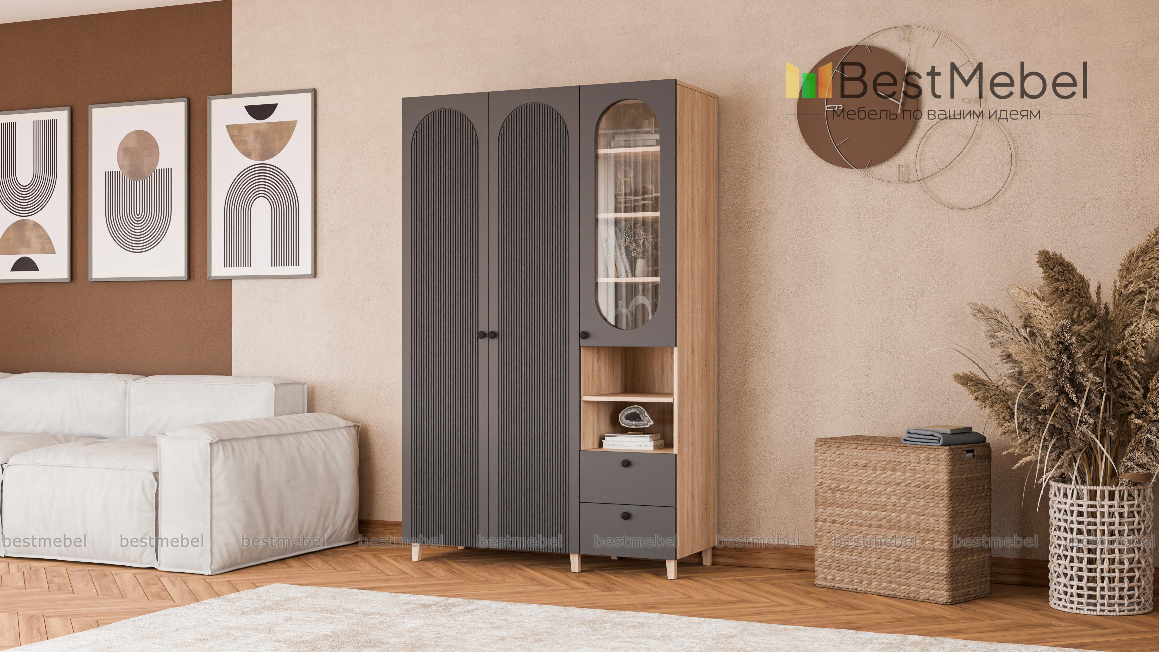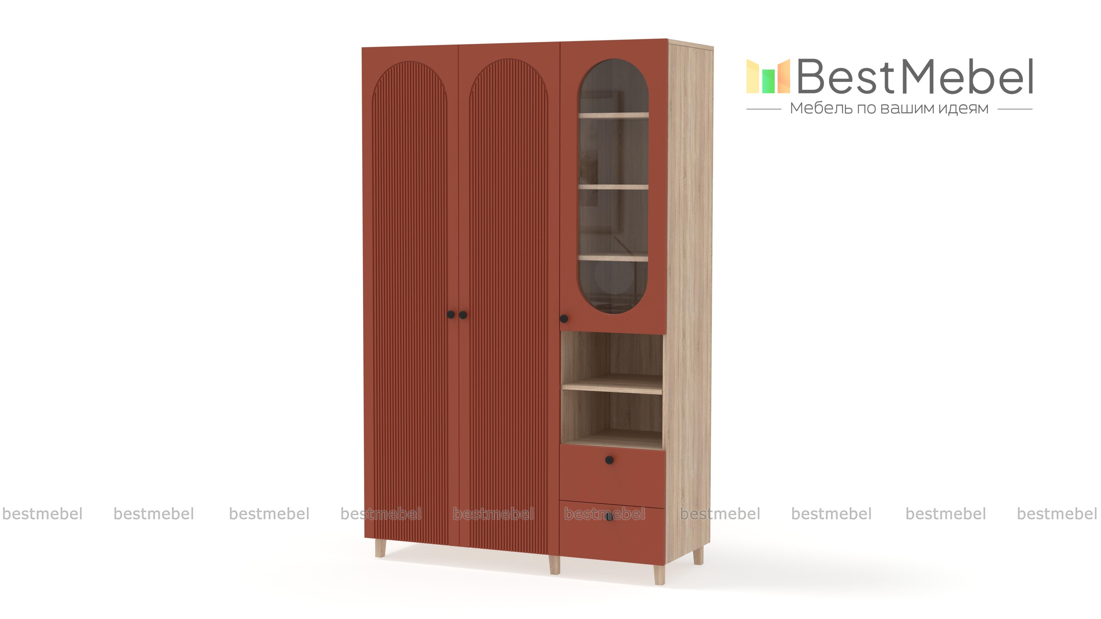 Шкаф распашной Рене 12 BMS обеспечит разные варианты хранения благодаря функциональной конструкции. Слева располагается одежная штанга за распашными дверцами, а справа — застекленные полки, ниши и пара выдвижных ящиков. Высокие ножки добавляют этой элегантной фрезерованной модели в светлом оформлении легкости и «воздушности». Купить шкаф распашной Рене 12 BMS вы сможете недорого на сайте нашего интернет-магазина, подобрав размеры, цвет и фурнитуру.