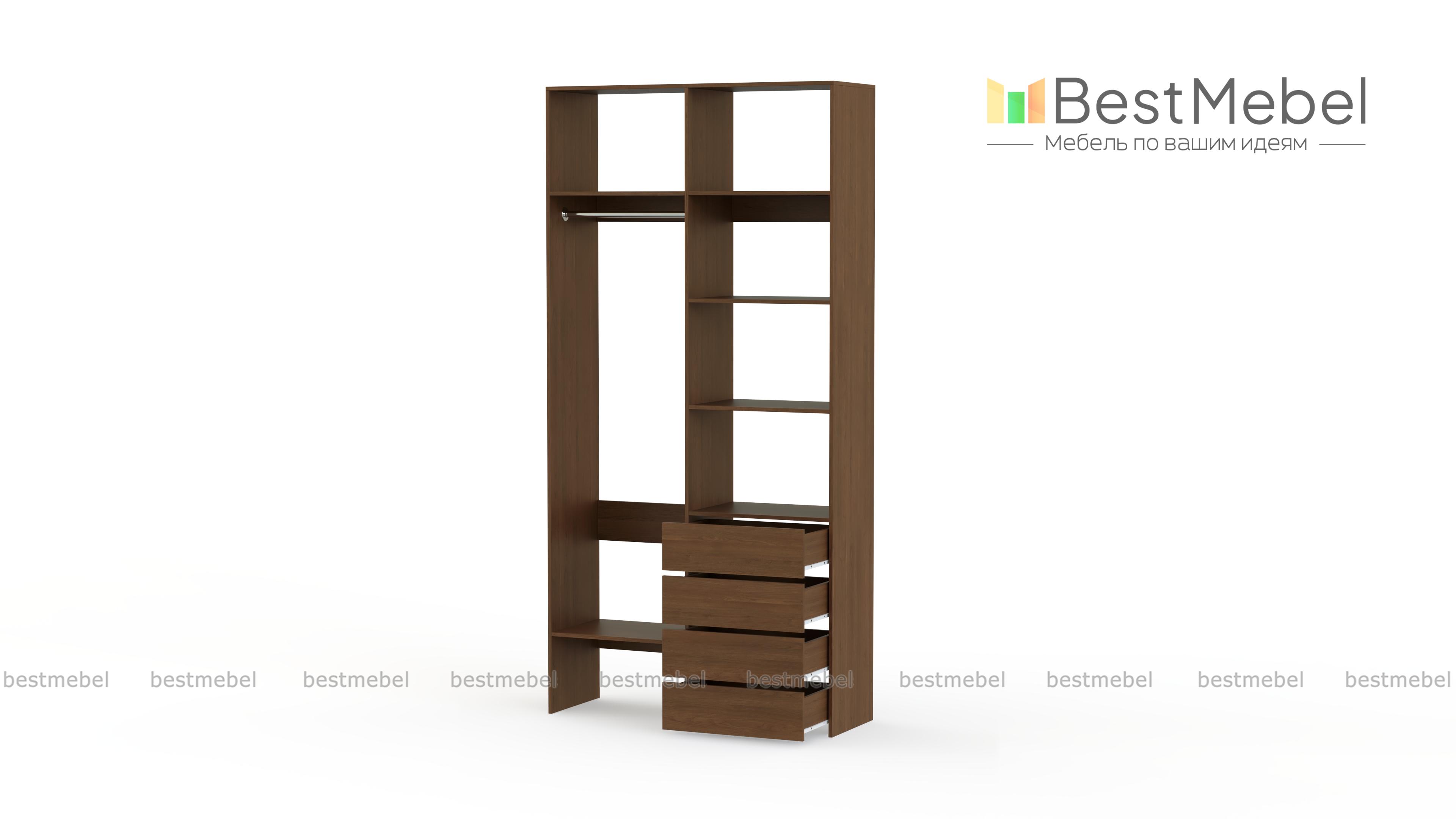 Стеллаж для одежды Мирта 2 BMS поможет вам организовать хранение дома или в торговом зале. Открытая конструкция со штангой, полками и рядом из четырех выдвижных ящиков подходит для размещения одежды на вешалках, коробок с обувью и мелкого трикотажа. Материал изготовления – устойчивая к износу и долговечная ламинированная плита в базовом оттенке. Купить стеллаж для одежды Мирта 2 BMS приглашаем в наш интернет-магазин, подобрав необходимые размеры и цвет по каталогу.