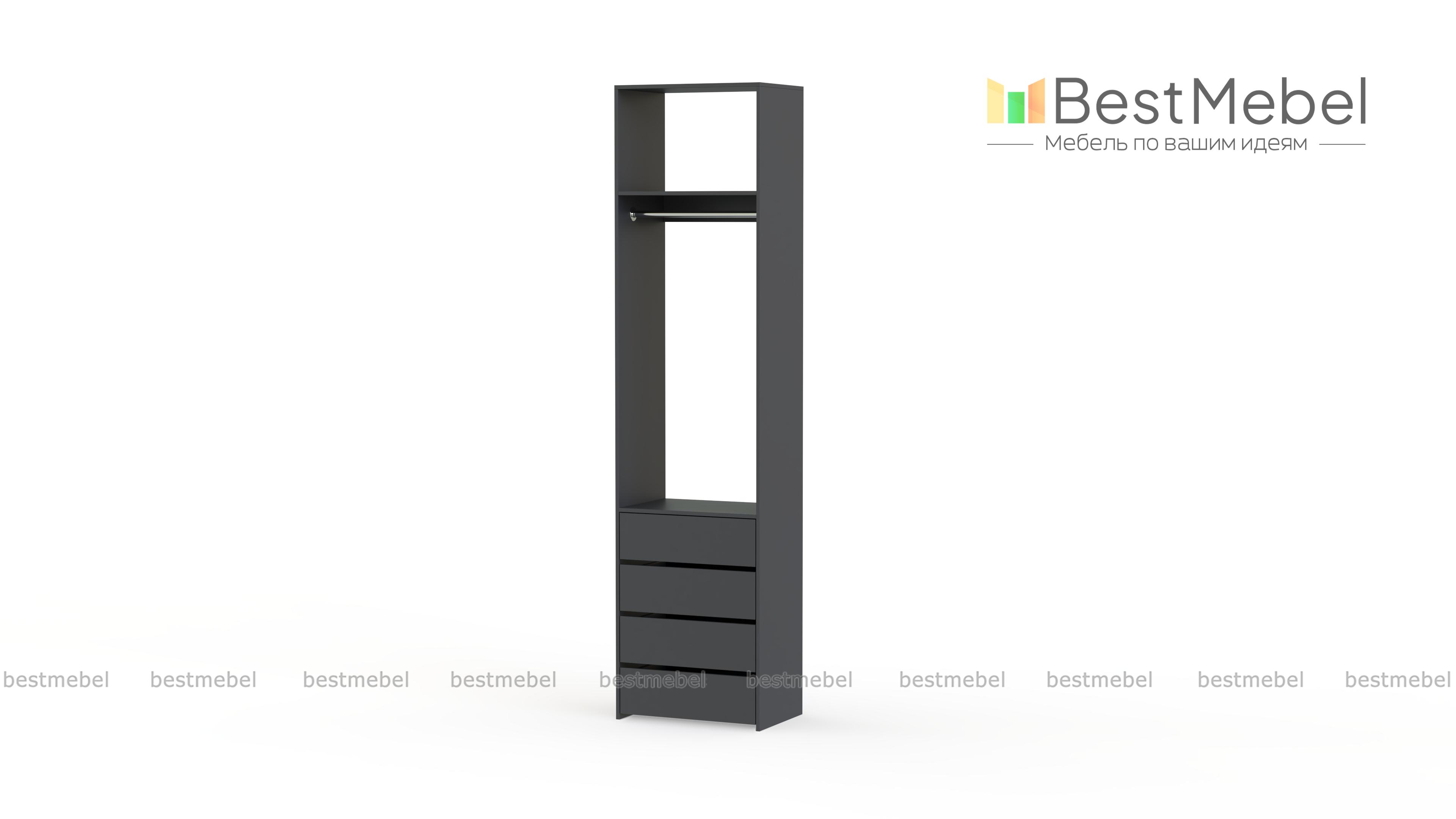 Стеллаж для одежды Мирта 32 BMS позволит вам эффективно использовать даже небольшое пространство. Для удобного доступа к одежде и обуви открытая конструкция оборудована металлической штангой, верхней полкой и четырьмя выдвижными ящиками. Лаконичный дизайн без декора и накладной фурнитуры легко сочетать с разными по стилю интерьерами. Купить стеллаж для одежды Мирта 32 BMS вы сможете на сайте нашего интернет-магазина в необходимом размере и оттенке.
