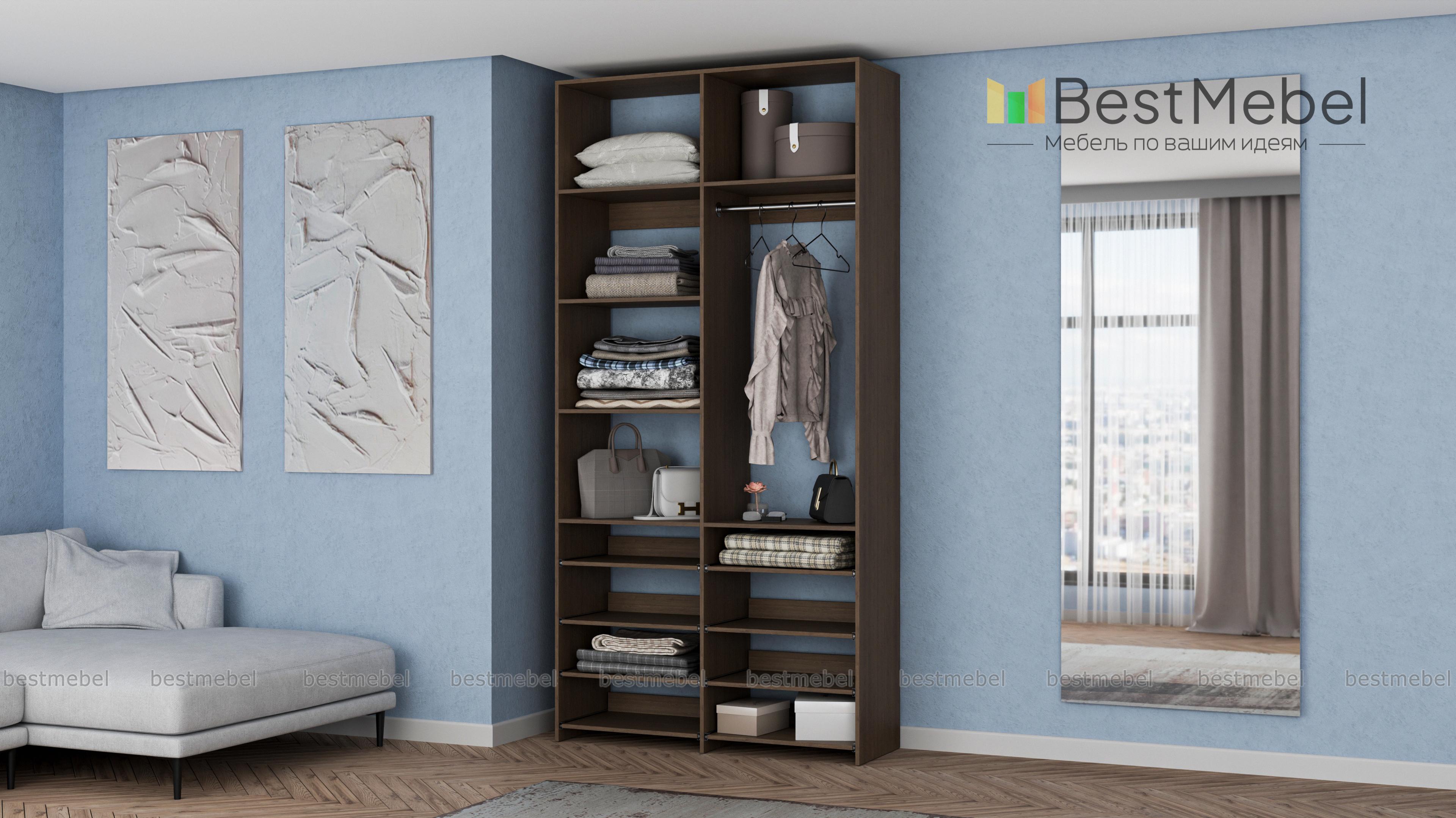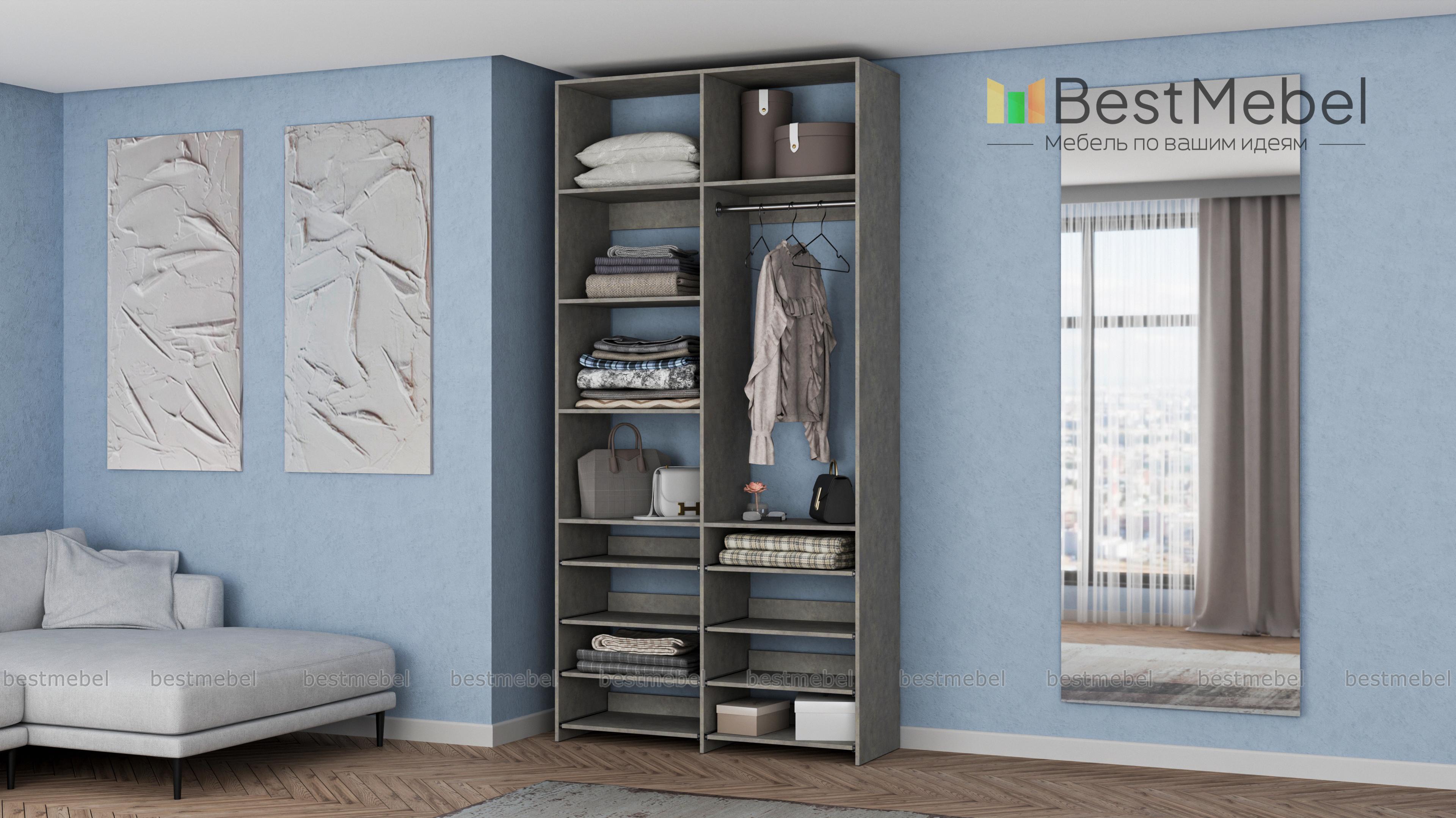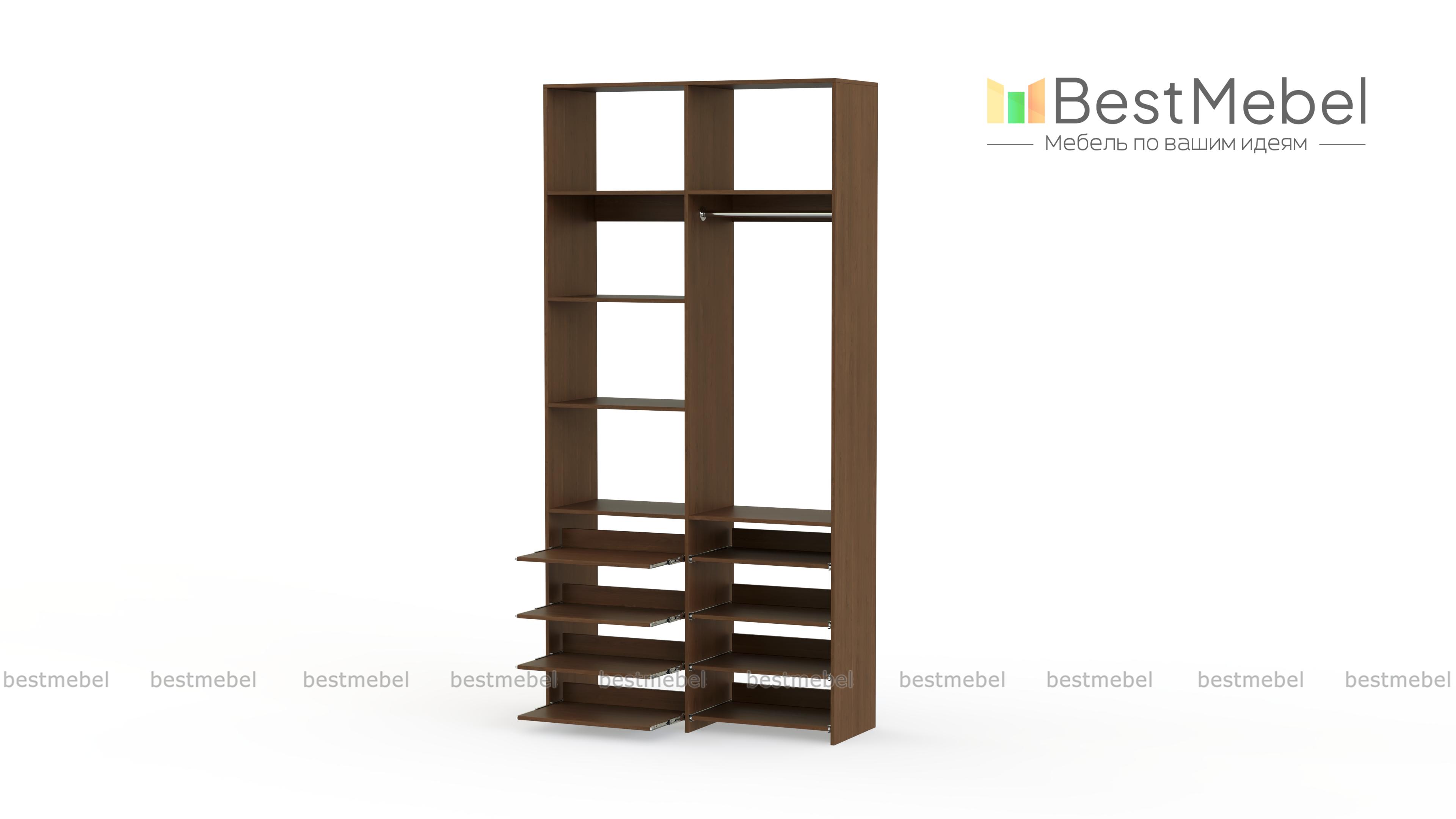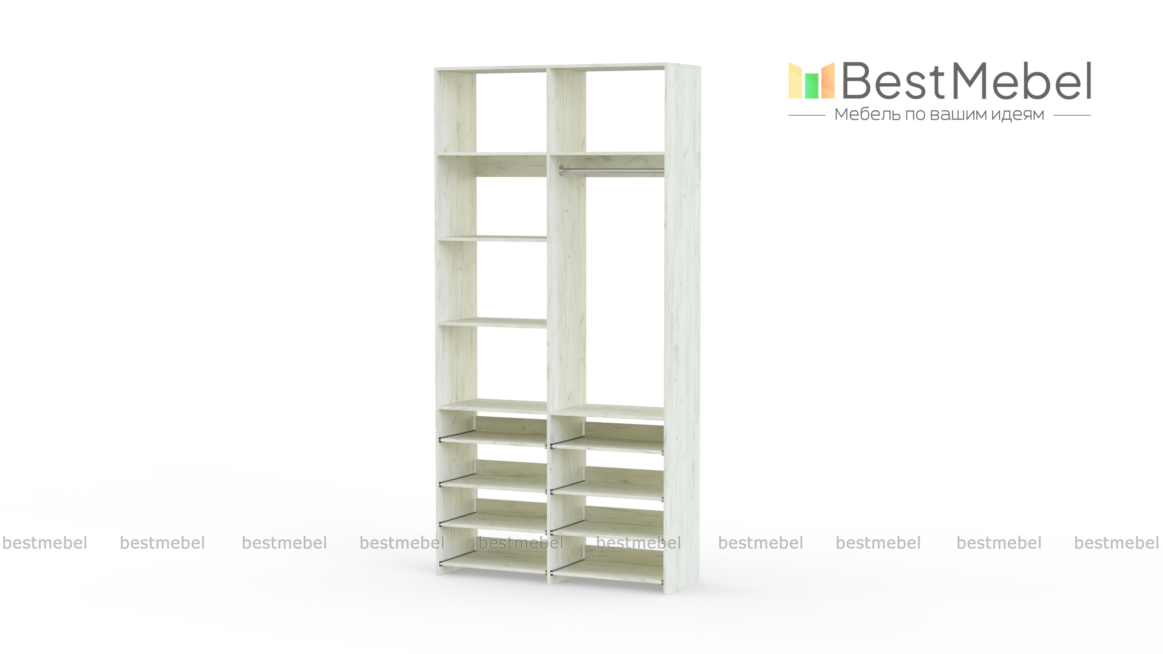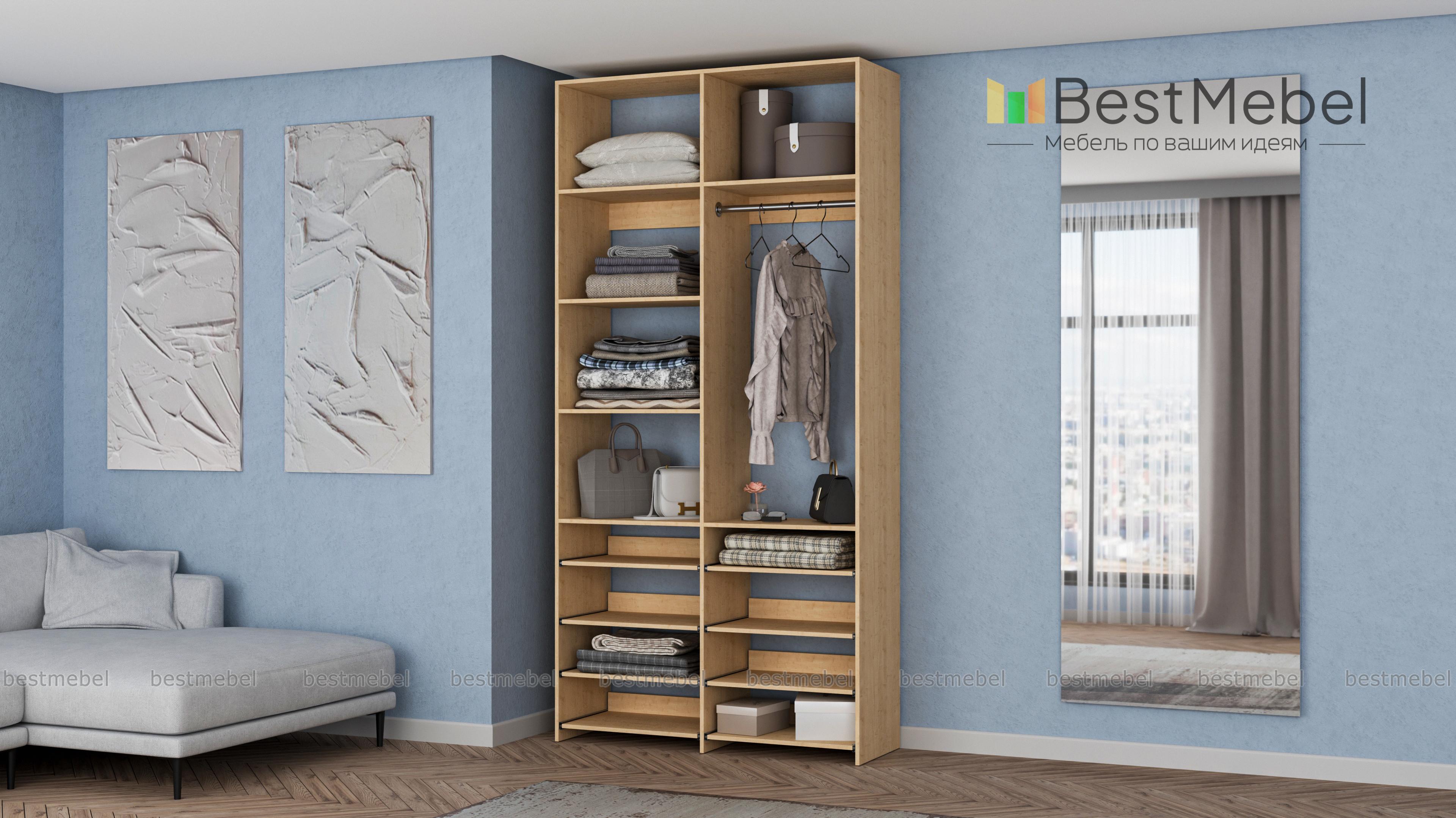 Стеллаж для одежды Мирта 83 BMS прекрасно подходит для маленьких комнат и комбинированного хранения. Конфигурация со штангой и полками — стационарными и выдвижными, оптимальна для плечиков с одеждой, обуви и вещей в сложенной виде. Универсальный дизайн стеллажа в нейтральном древесном оттенке гармонирует с самыми разными по стилю интерьерами. Купить стеллаж для одежды Мирта 83 BMS, изготовленный по индивидуальным размерам, приглашаем в наш интернет-магазин.
