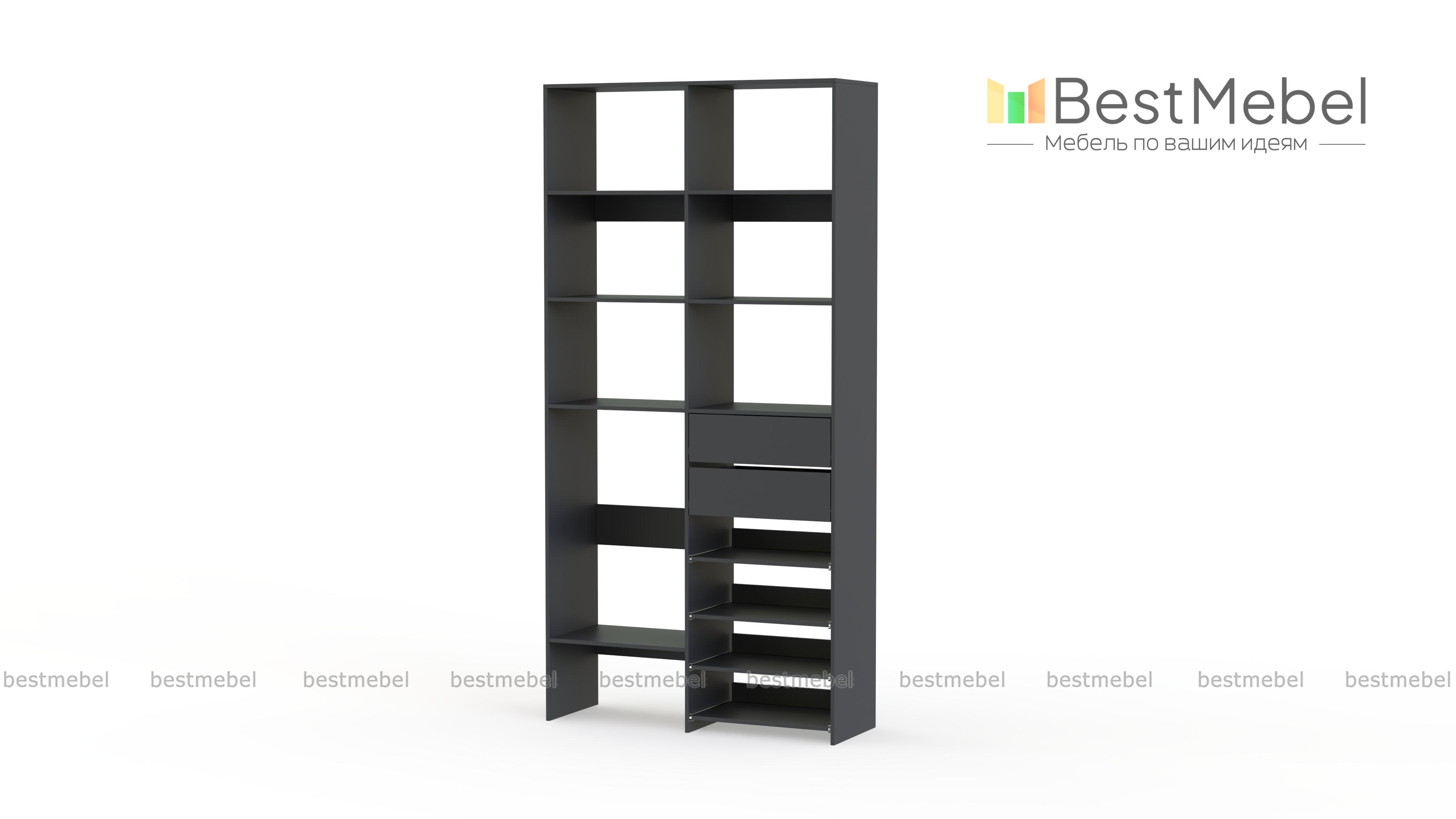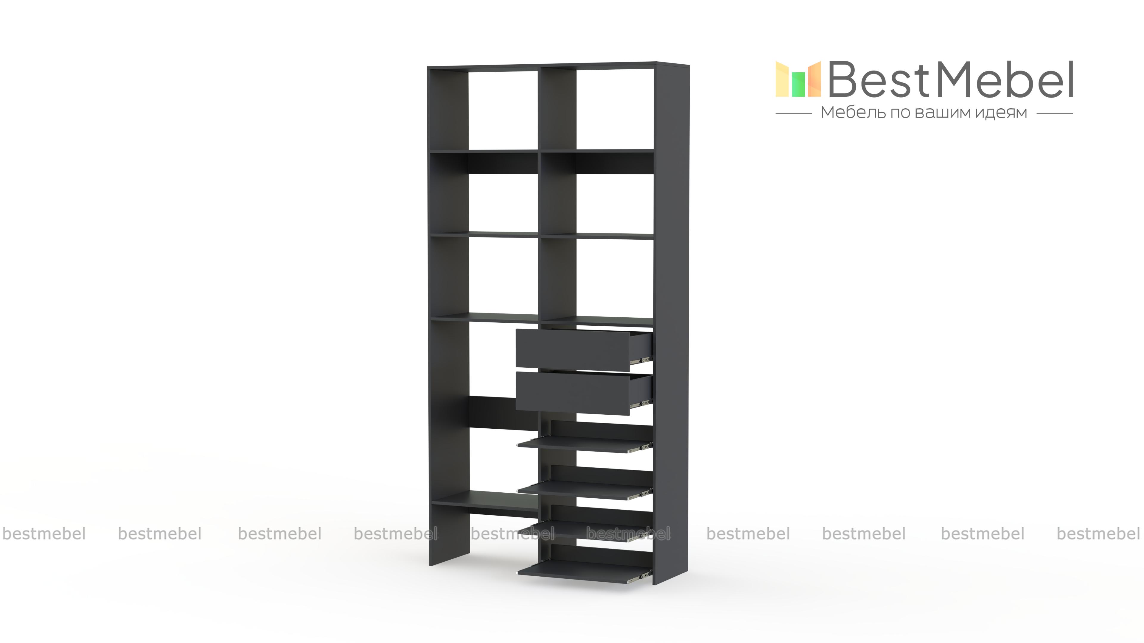 Стеллаж для одежды Мирта 86 BMS поможет вам легко избавиться от беспорядка. Секции разных размеров, два выдвижных ящика и четыре полки на направляющих прекрасно подойдут для хранения сложенной одежды, мелкого трикотажа, корзин и коробок с вещами. Благодаря скромным габаритам стеллаж легко поставить в нишу, разместить в маленькой прихожей или гардеробной. Купить стеллаж для одежды Мирта 86 BMS с выбором цвета и размеров приглашаем в наш интернет-магазин.