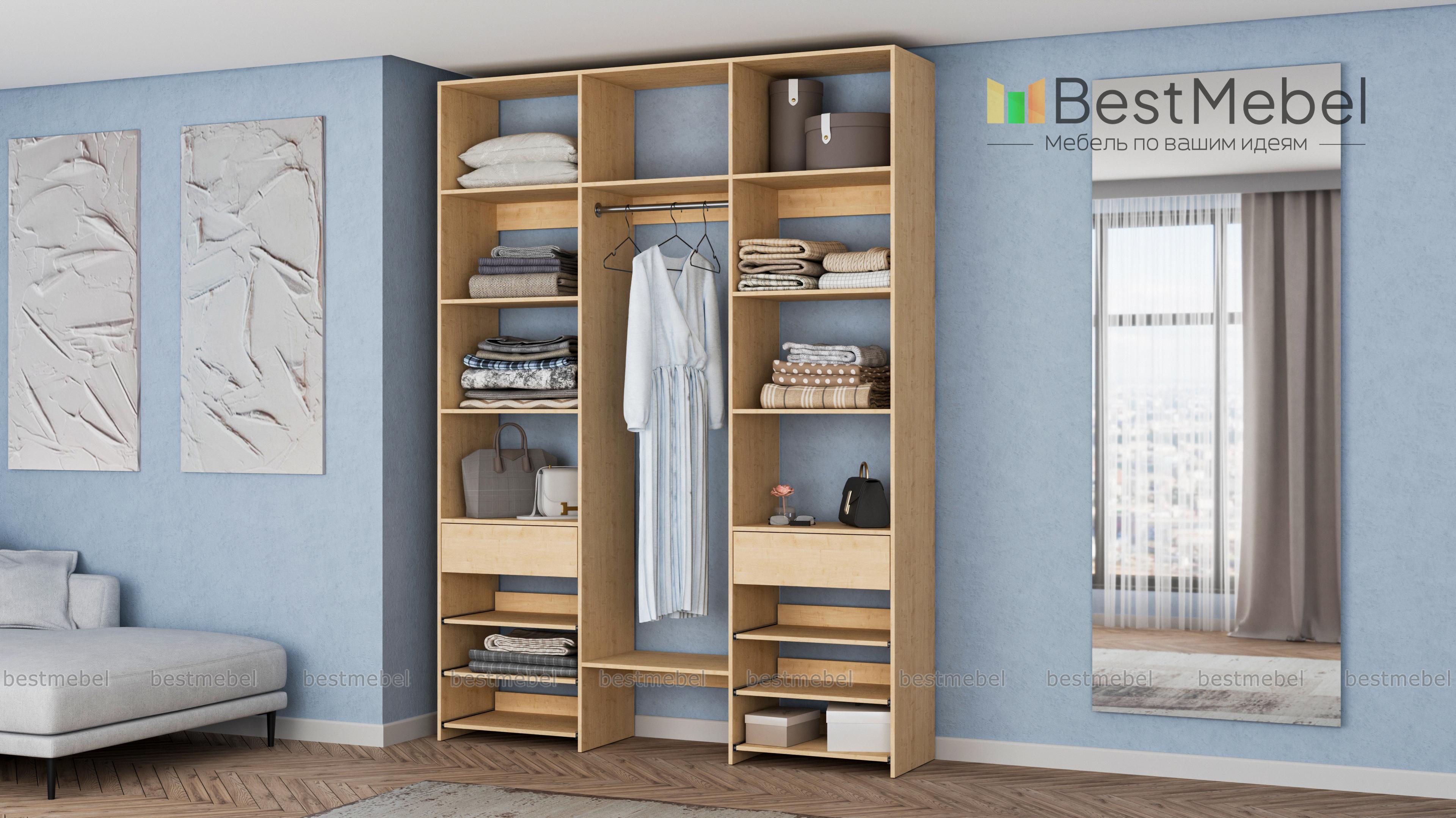 Стеллаж для одежды Мирта 93 BMS поможет вам разместить повседневные и редко используемые вещи. Удобная конфигурация включает в себя расположенные на разной высоте полки и секцию для вешалок, два ящика под мелкие предметы и выдвижные панели справа и слева. Благодаря изготовлению из ламинированной плиты стеллаж надежный, доступный по цене и обладает широким выбором актуальных оттенков. Купить стеллаж для одежды Мирта 93 BMS в оптимальном размере приглашаем к нам в интернет-магазин.