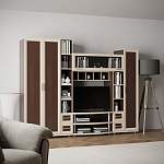Стенка Юпитер BMS поможет оригинально и уютно оформить гостиную, разместив домашнюю библиотеку, телевизор и интерьерные украшения. Благодаря контрастному оформлению рамочные фасады смотрятся актуально, а большое количество открытых секций делает конструкцию визуально легкой. Двухдверный платяной шкаф, пенал с полками, стеллажи, навесные полки и тумба составляют стильную ступенчатую композицию. Купить стенку Юпитер BMS приглашаем в наш интернет-магазин с индивидуальным подбором цвета и размеров.