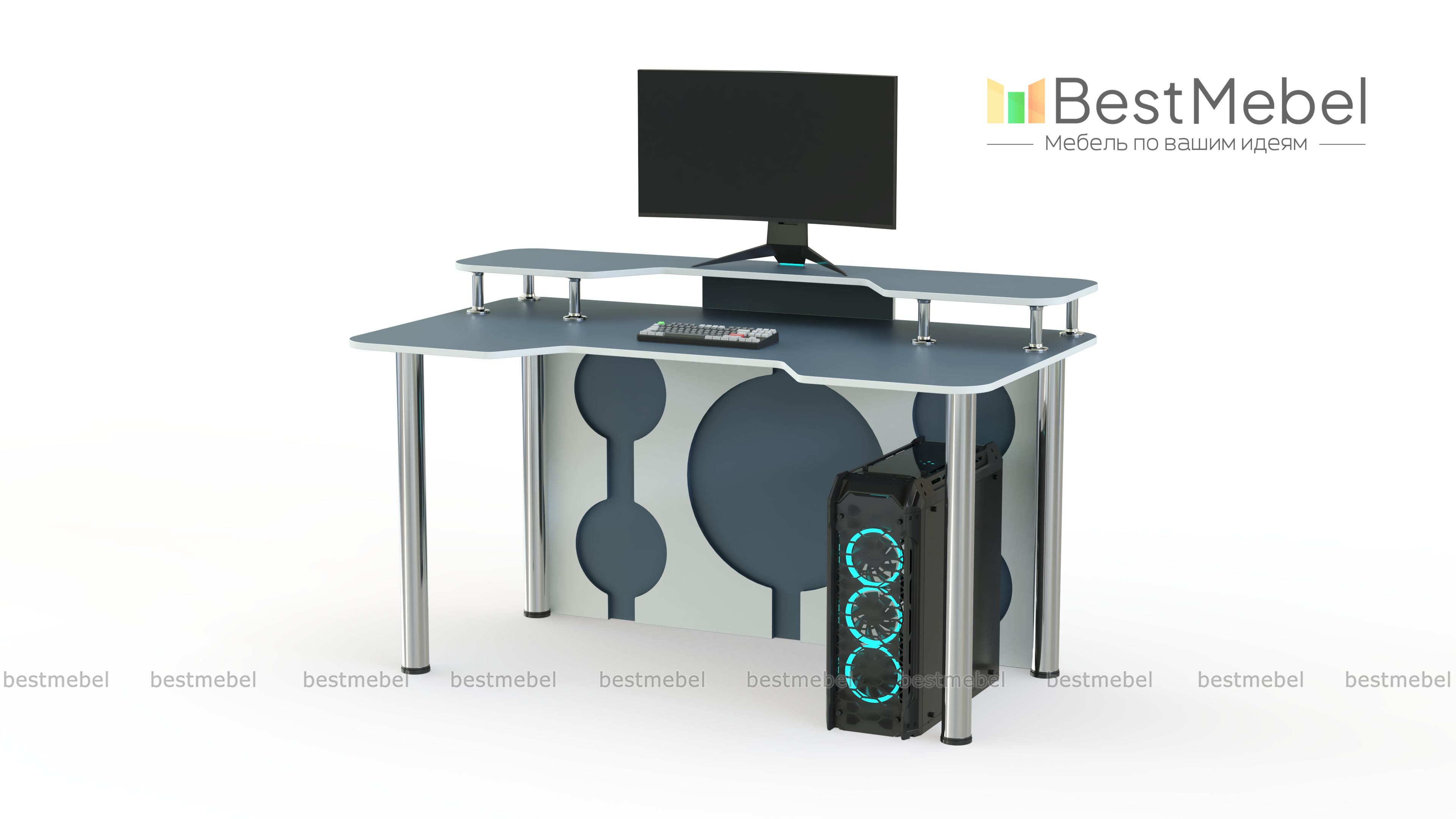 Игровой стол Европа 15 BMS эффектно впишется в современный интерьер и поможет обустроить комфортное геймерское пространство. Легкая и устойчивая благодаря регулируемым хромированным опорам, модель выполнена в контрастной черно-белой гамме. Столешница с эргономичной выемкой переднего края дополнена надстройкой под монитор и периферийные устройства, задняя стенка декорирована круглыми вырезами. Купить игровой стол Европа 15 BMS приглашаем в наш интернет-магазин с возможностью изготовления по индивидуальным размерам.