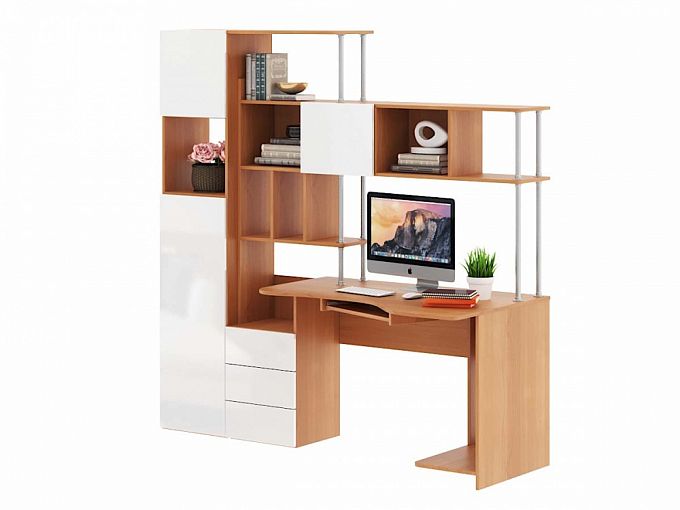 Компьютерный стол МБ 31.1 BMS – многофункциональная модель, которая станет практичной заменой громоздкому книжному шкафу. Стол экономит полезную площадь комнаты благодаря угловой конструкции и оборудован всем необходимым для работы. Разместить компьютер помогут столешница с эргономично изогнутым передним краем, выдвижная полка для клавиатуры и ниша под системный блок. Для хранения книг, папок с документами, предметов декора и много другого предназначена надстройка, совмещенная с тумбой и пеналом. Купить компьютерный стол МБ 31.1 BMS вы сможете по отличной цене в нашем интернет-магазине.