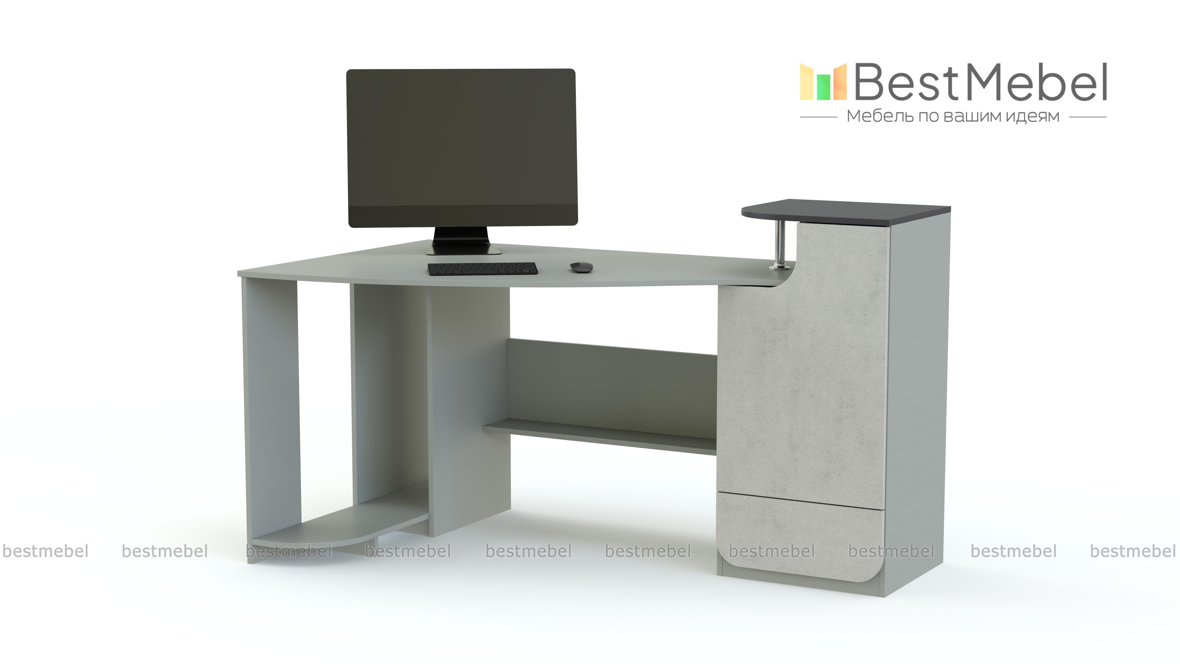 Стол компьютерный МБ-42.1 BMS поможет оборудовать комфортное и стильное рабочее место. Практичная угловая модель с боковым отделением выгодно использует доступное пространство и будет подходящим вариантом для малогабаритного помещения. Под столешницей с закругленным краем располагается полка для бумаг и отделение для системного блока. Вместительная боковая тумба оборудована распашным отделением с полками, выдвижным ящиком для канцелярских мелочей и удобной надстройкой на хромированной опоре. Купить стол компьютерный МБ-42.1 BMS вы сможете в нашем интернет-магазине по лучшей цене.