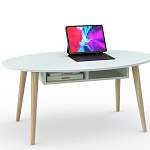Журнальный стол Фанни 14 BMS с белой овальной столешницей внесет яркие краски в минималистичный интерьер. Лаконичный и функциональный, столик может служить подставкой для любимого декора или разместить рабочий ноутбук, а в нишах под столешницей удобно хранить книги и журналы. Для легкости и устойчивости – высокие скошенные опоры в скандинавском стиле. Купить журнальный стол Фанни 14 BMS приглашаем в наш интернет-магазин с выбором оптимальных размеров и цвета.