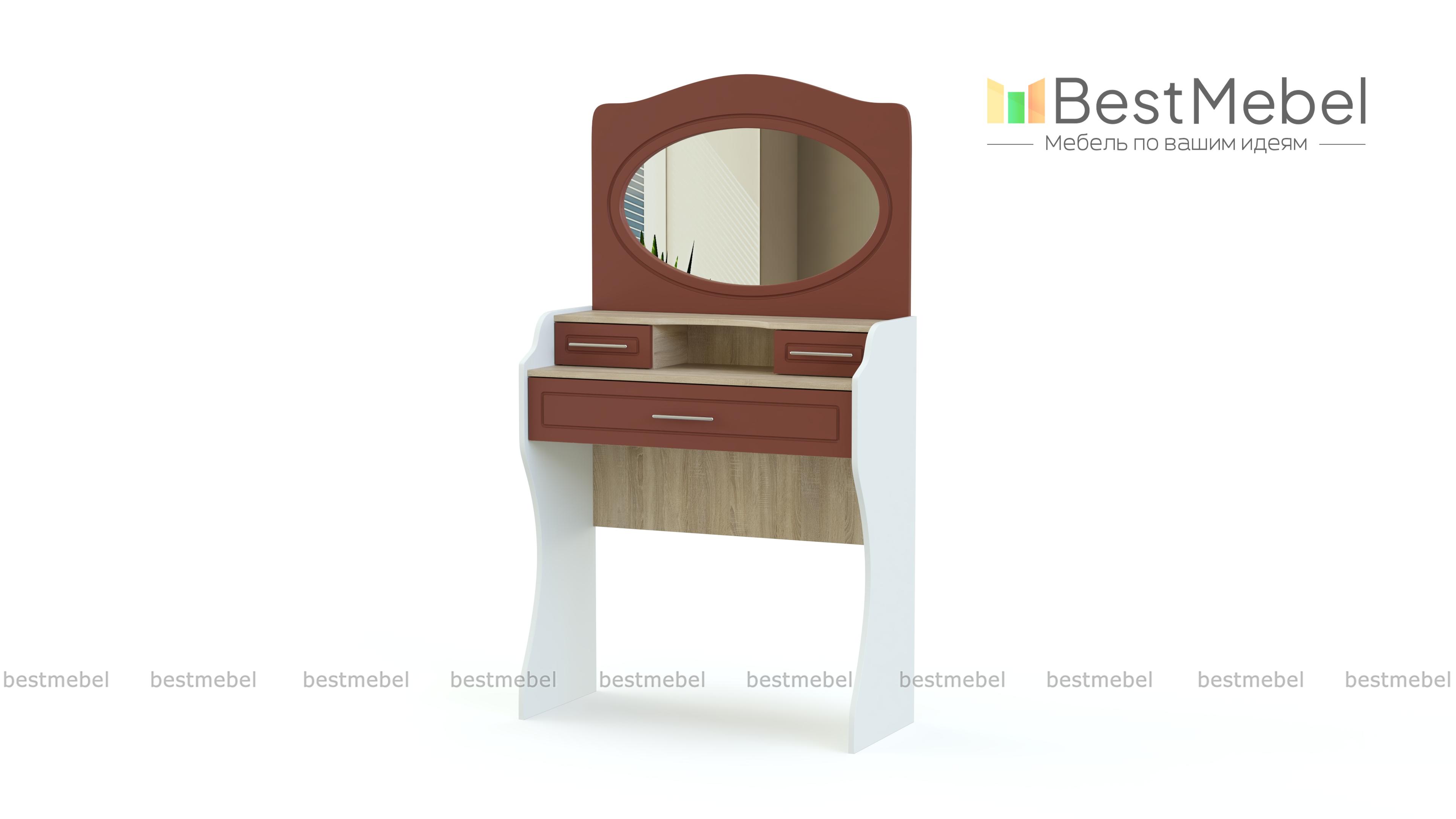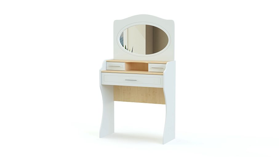Стол туалетный Купидон BMS отличается прихотливыми формами и декоративностью классического стиля. Компактный столик украшен фигурно вырезанными опорами, овальным зеркалом и изящными ручками. Удобное размещение косметике, аксессуарам и парфюму обеспечат расположенные на двух уровнях выдвижные ящички с фрезерованными фасадами. Светлые древесные оттенки станут гармоничным дополнением интерьера романтичной спальни. Купить стол туалетный Купидон BMS по привлекательной цене приглашаем в наш интернет-магазин.