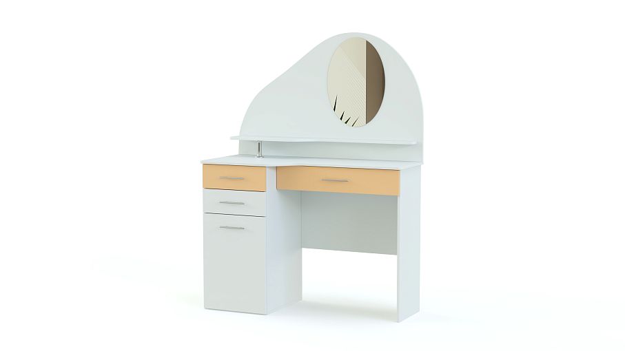 Столик Ванесса-3 BMS – это изящная модель для детской или молодежной комнаты в нежной бело-персиковой гамме. Столик оборудован столешницей волнообразной формы, под которой располагаются выдвижной ящик для важных мелочей и тумба. Панель надстройки с овальным зеркалом и открытой полочкой фигурно вырезана. Износостойкие и простые в уходе поверхности станут залогом эстетичного внешнего вида. Купить столик Ванесса-3 BMS для уютного и функционального интерьера приглашаем в наш интернет-магазин.