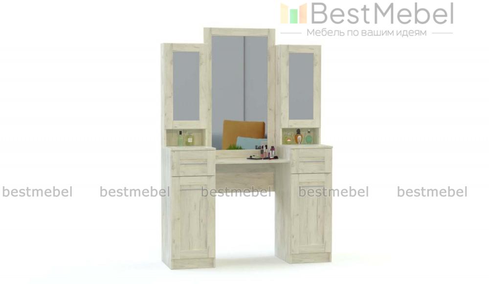 Туалетный стол Гаурон №1.1 BMS благодаря продуманной и вместительной конструкции поможет расположить максимальное количество всех необходимых уходовых средств, косметики и других предметов первой необходимости в одном месте. За двумя зеркальными фасадами скрыты отделения с полками, а сами распашные отделения позволяют использовать модель как трюмо. Изделие оборудовано двумя выдвижными ящиками для хранения мелочей и двумя распашными отделениями с глухими фасадами. Износостойкие и долговечные материалы сохранят эстетичный вид модели на долгое время использования. Купить туалетный стол Гаурон №1.1 BMS, подобрав необходимые размеры, приглашаем в наш интернет-магазин.