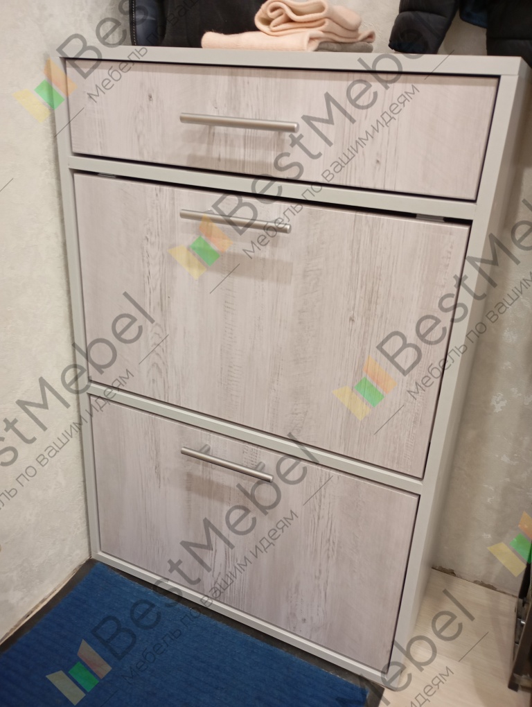 Тумба для обуви Лед 6 BMS органично дополнит популярные интерьеры в стиле минимализм. Удобная система хранения включает в себя два откидных отделения под обувь и выдвижной ящик для средств по уходу, аксессуаров и прочих мелочей. Корпус светлого древесного оттенка скомбинирован с серым глянцевым фасадом. Износостойкие поверхности не требовательны в уходе и надолго сохранят эстетичный вид. Купить тумбу для обуви Лед 6 BMS и дополнить прихожую практичной деталью вам всегда поможет наш интернет-магазин.