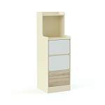 Тумба прикроватная Палитра 1 BMS гармонично впишется в современный спальный интерьер и разместит под рукой все необходимые мелочи, книги, уходовые средства и предметы декора. Высокая узкая тумба оборудована тремя выдвижными ящиками, нишей и открытой полочкой с плавно вырезанными боковинами. Корпус светлого древесного оттенка дополняют фасады серого и белого цвета. Купить тумбу прикроватную Палитра 1 BMS приглашаем к нам в интернет-магазин по доступной цене.