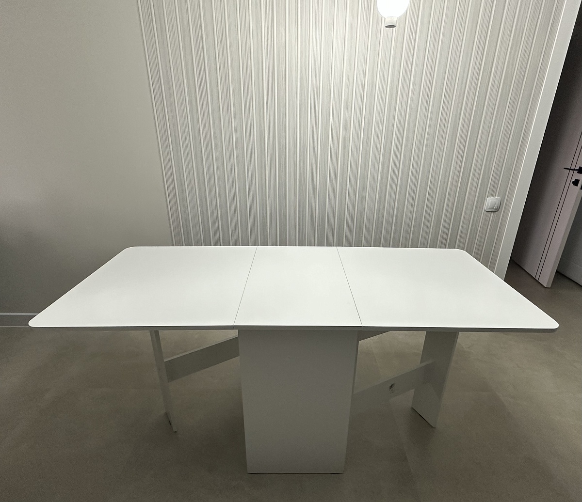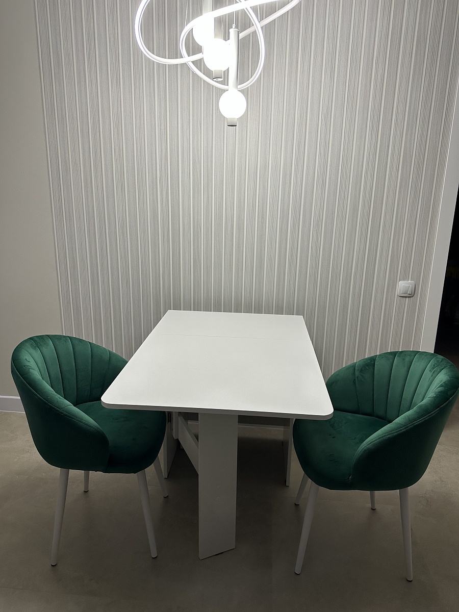 Заказ 00000150059.Кухонный стол - недорогой, но при этом крепкий и устойчивый. Выглядит аккуратно и стильно, белый цвет делает кухню светлее. Легко протирать, никаких следов не остаётся. Для своей цены — просто отличный вариант. Очень довольна им.