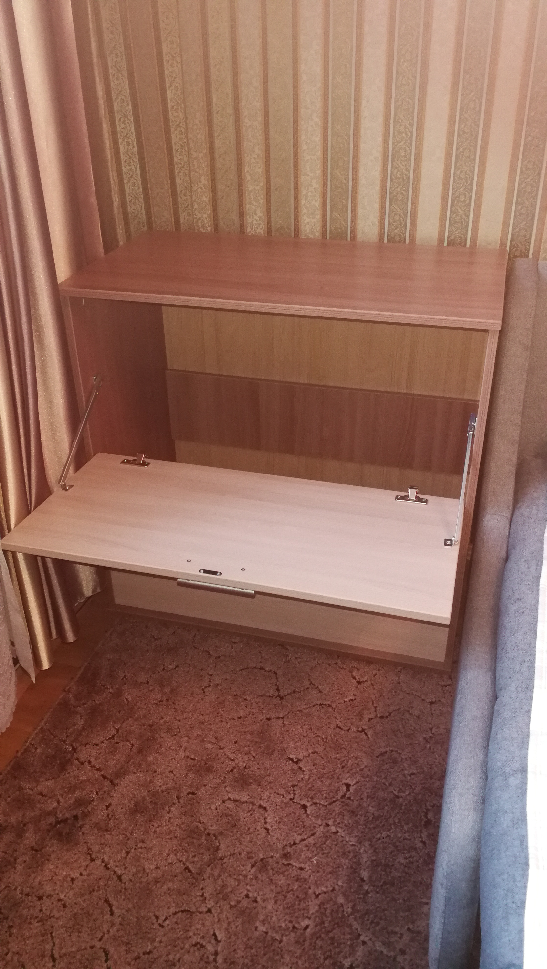 Покупала шкаф для детской. Довольна. Смотрится стильно. Просила сделать со "штангой". Обещали, но не сделали. Выдвижная штука мне не нравится. Ребёнок я думаю привыкнет